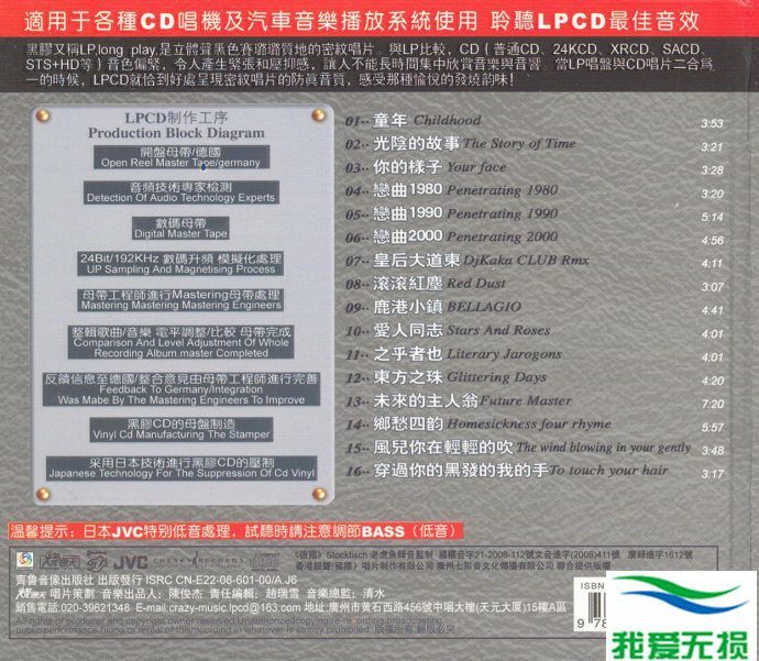 烧通天唱片珍藏系列之《老歌回忆录》将与你再回首,同享老歌精选,德国黑胶CD发烧精髓的完美体现,聆听极品音乐,专业制造最佳的靓声效果,享受无可抗拒的震撼。德国名厂黑胶专利技术,日本JVC作特别低音处理,完善高端LP系统听觉,动态惊人,音色极佳。