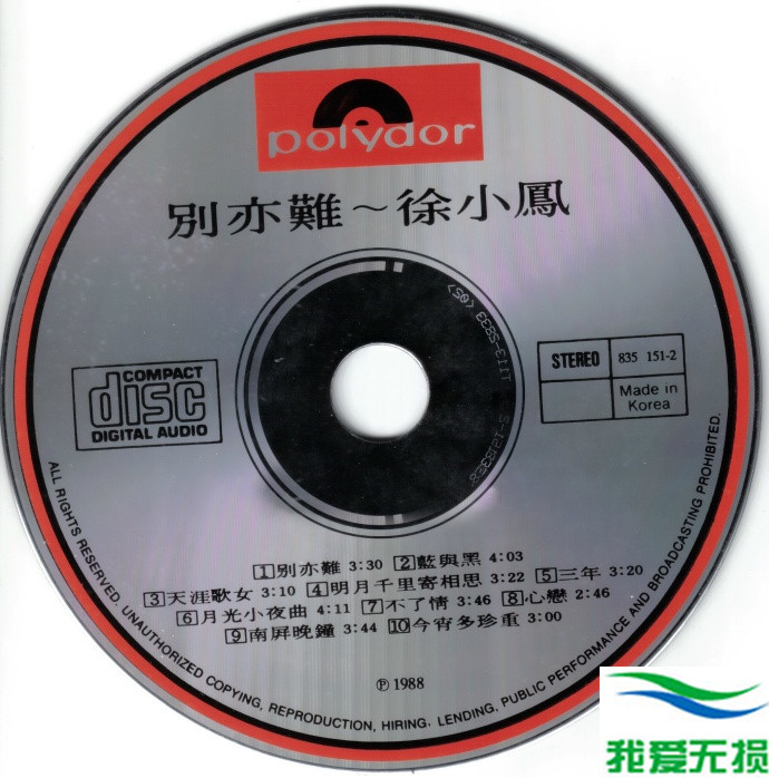 下载地址:徐小凤 – 《別亦難》1988宝丽金T113-02银圈[WAV].rar