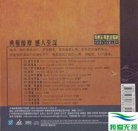 典雅醇厚,感人至深!独具一格的演唱功力,定位精准,音色通透自然,音乐更显婉传隽永,把情和怨演绎到浓得化不开,像是说到了你的心里,很唯美,但不腻味。音乐是一袭轻纱,能拂去你心头的蛛网,捧来智慧的灵光;音乐也会送来满腔激情,引导你去开拓创造;音乐的洗濯能化解你心灵的障碍,自省而平静意境将描绘出如画的美景。