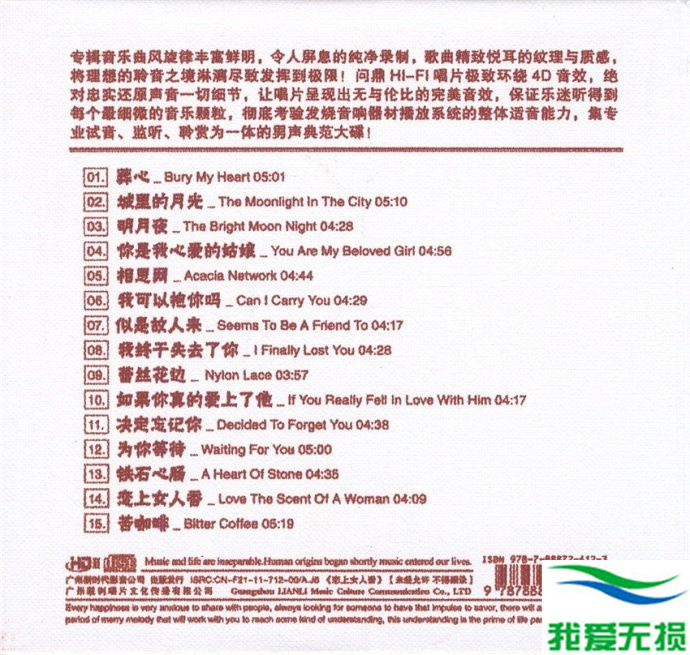 专辑音乐旋律丰富鲜明,令人屏息的纯净录音,歌曲精致悦耳,忠实还原声音细节,高保真音效的男声典范试音发烧碟