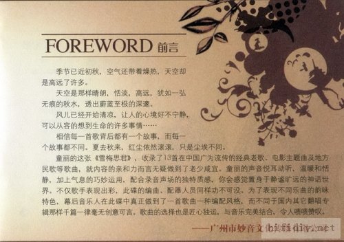 一沙一世界,一花一天国。每一首歌背后都有一个故事,而每一个故事都不同。而那些红尘中凋零散落的故事,是我们相知的线索,正如那些被传唱的歌。唱黑了天,唱黄了叶,唱过了一代又一代思念的季节,只剩下那些佚名的歌词,变成了诗。而这些诗就是生活,它等待着我们用成长的步履去谱写,去解读。近似天籁,宛如神话。此专辑带您体验那尘埃落变,开启梦的霞光。
