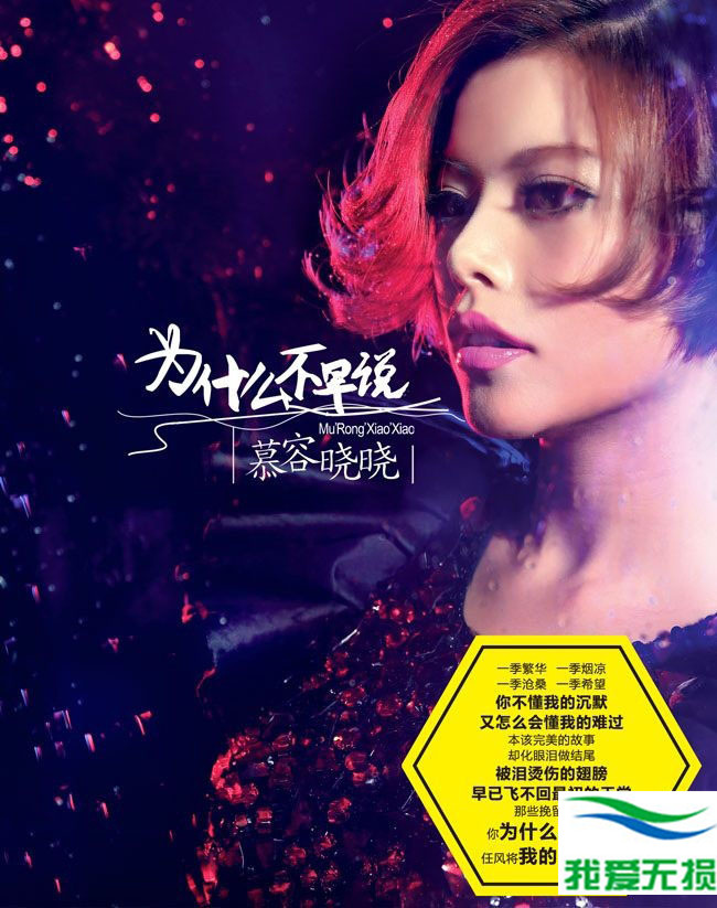 亚洲“神曲天后”慕容晓晓继《爱情买卖》、《原形》、《徽常美I》专辑后推出第四张专辑《为什么不早说》,今日在互联网首发,歌曲制作仍由老东家华顺文化一手包办,其中同名主打歌更是融入了浓厚的民族元素以琵琶为主来操控间奏的大盘。慕容晓晓表示:很欣慰老东家华顺文化、歌迷们、朋友们一如既往对自己的支持。