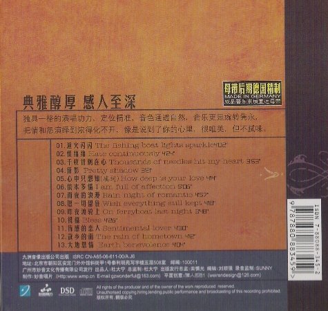 典雅醇厚、感人至深、独具一格的演唱功力,定位精准,音色通透自然,音乐更显婉转隽永。把情和怨演绎到浓得化不开,像是说到了你的心里,很唯美,但不腻味。