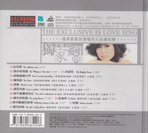 此张专辑,由本公司挖掘的韩国歌手—李贤演唱,她的歌声拥有一种独特的清新纯美魅力,一出道便被乐迷冠以“天使之音”的美誉。收录了13首旋律耳熟能详的电影与韩剧主题曲及经典情歌。打破一贯传统风格的诠解,重新编曲录制,配器丰富,为这些金曲注入新鲜的时代气息,令人印象难忘。其中《红花雨》编曲气势磅礴,弦乐的演奏尤其突出。李贤的歌声既浪漫又激情,给你崭新的感受。《风中的耳语》采取男女对唱的形式演绎,情深款款的演唱令人如痴如醉。《金达莱》是朝鲜电影《卖花姑娘》插曲,咀形及口水声清晰鲜明,感情丰富的唱作丝丝入扣,动人心弦。人声结像力与质感皆非常出色,是一张好听兼好声的精彩CD。