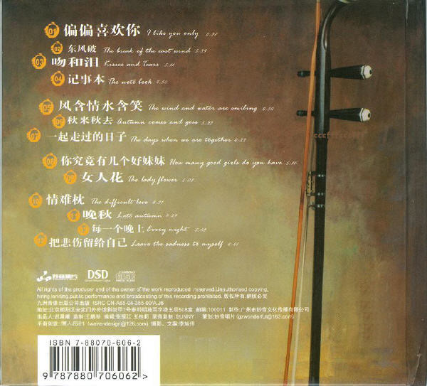 专辑的二胡独奏者黄江琴是位技艺很高并对音乐感觉很敏锐的演奏家,她早年毕业于海南艺术学院二胡专业,1982年起任南方歌舞团民乐队首席至今,其间先后多次在国内二胡比赛中获多项大奖,听完这张唱片给人最深的印象是音准好,每个音符出来都恰到好处,没半点毛噪刺耳,比原唱听来还要纯净、还要胜一筹。其次是感觉好,演奏者非常善于用弓弦来歌唱,每句旋律、每个音符都十分到位。将每首熟悉的老歌拉得娓娓动听、丝丝入扣,直让人如醉如痴。