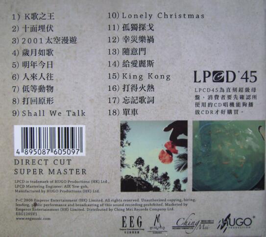 LPCD 45,由於采用一对一直刻印制方式生产,保证每张CD和母带有相同的音响重播效果,并限量生产,可防止翻版,发烧友可视《陈奕迅(LPCD 45)》为珍藏品。